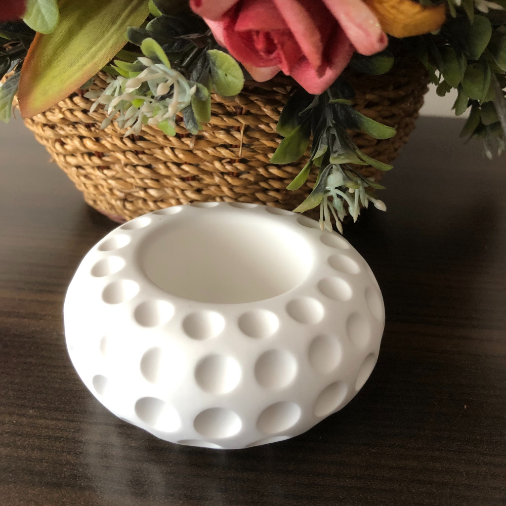 Drop Rölyefli Beyaz Dekoratif Küçük Saksı ve Mumluk – El Yapımı 3’lü Set
